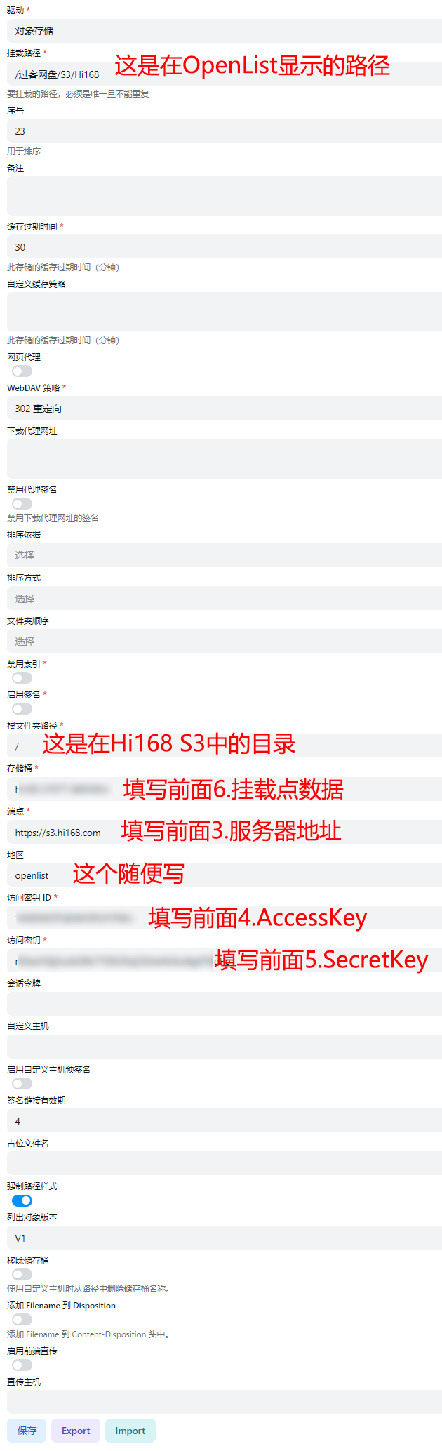 OpenList添加存储,选择对象存储,然后把上面的S3信息填写进上保存。