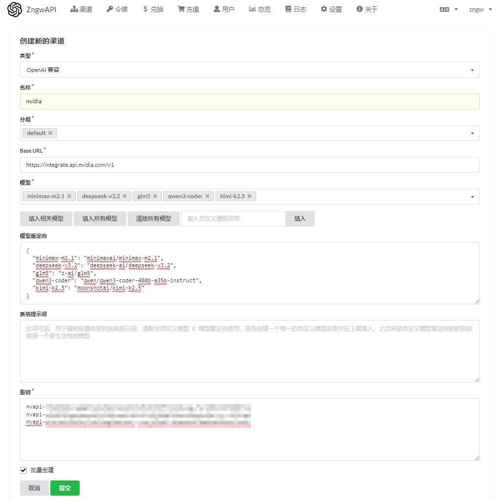 NVIDIA模型,选择OpenAI 兼容 - 名称:随便写一个