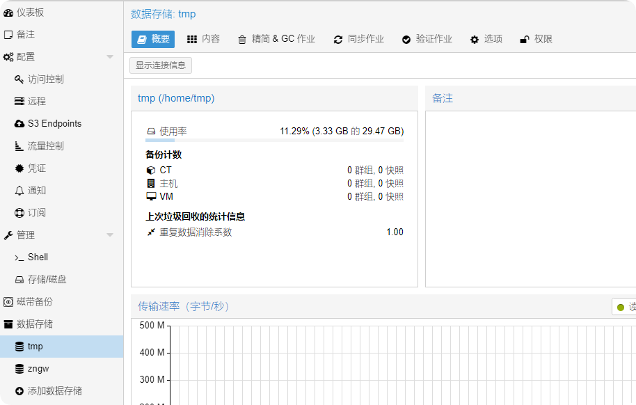 再回到pbs后台,zngw数据存储已经恢复正常了。