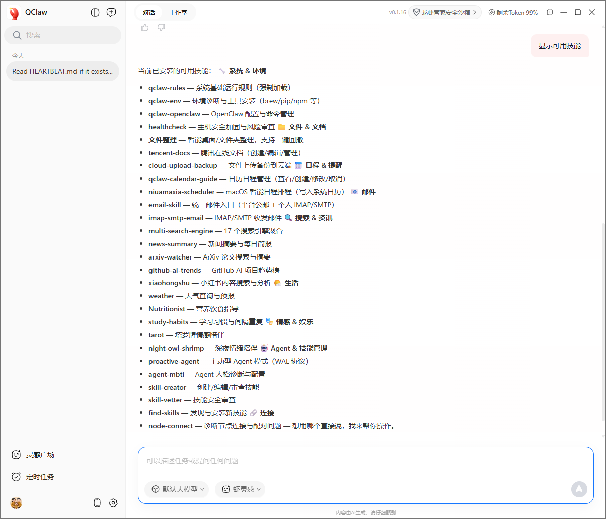 - 如果你是安装在工作电脑或个人电脑中,防止它误伤你的东西,可以把 工具权限限制打开,要让QClaw操作的文件和数据复制到它的工作空间中,处理远再复制走。