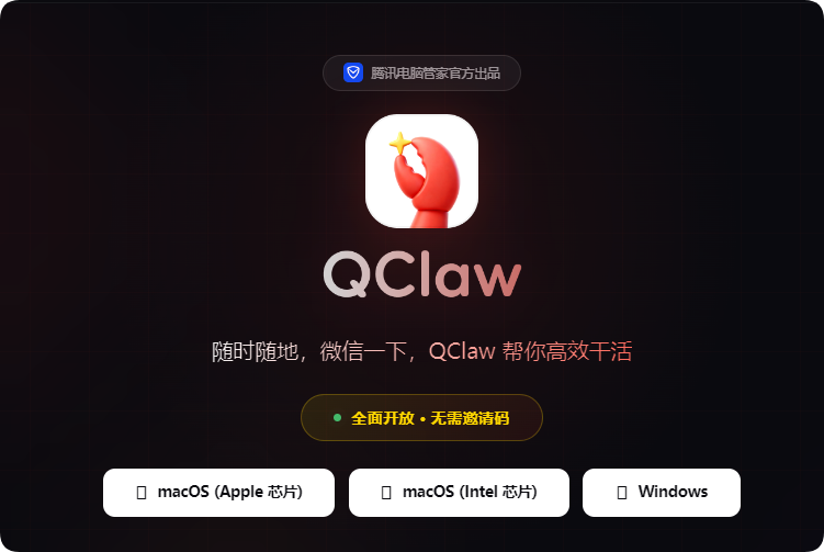 先去官网https://qclaw.qq.com/下载安装包,目前只支持Win和苹果系统。已经把小龙虾封装好了,就和安装普通应用程序一样,直接默认安装就好了,开箱即用。