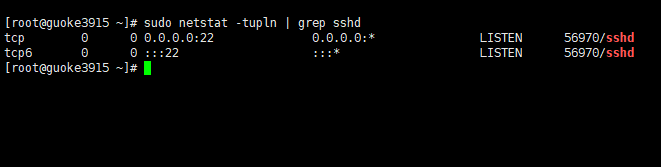 netstat或ss命令检查 SSH 是否正在监听 IPv6 端口(通常是端口 22):