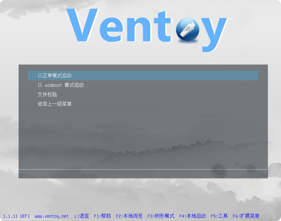 开机从U盘启动后,Ventoy 会自动列出所有 ISO 文件,选择需要启动的那个回车即可。