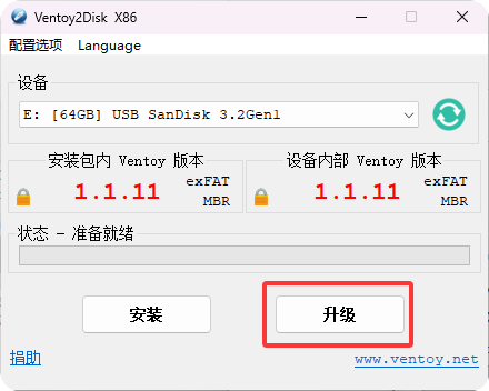 如果你之前已经用旧版本 Ventoy 安装了U盘,想要升级: