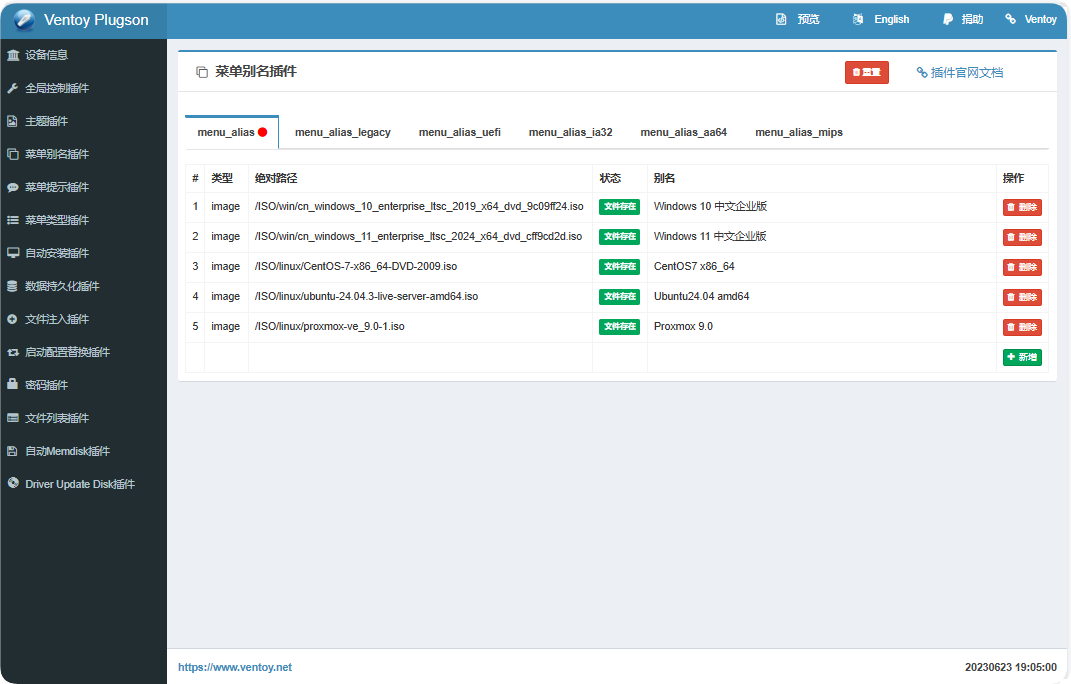Ventoy 还支持插件扩展,通过 ventoy.json 可以配置,也可以通过VentoyPlugson应用在web ui来配置